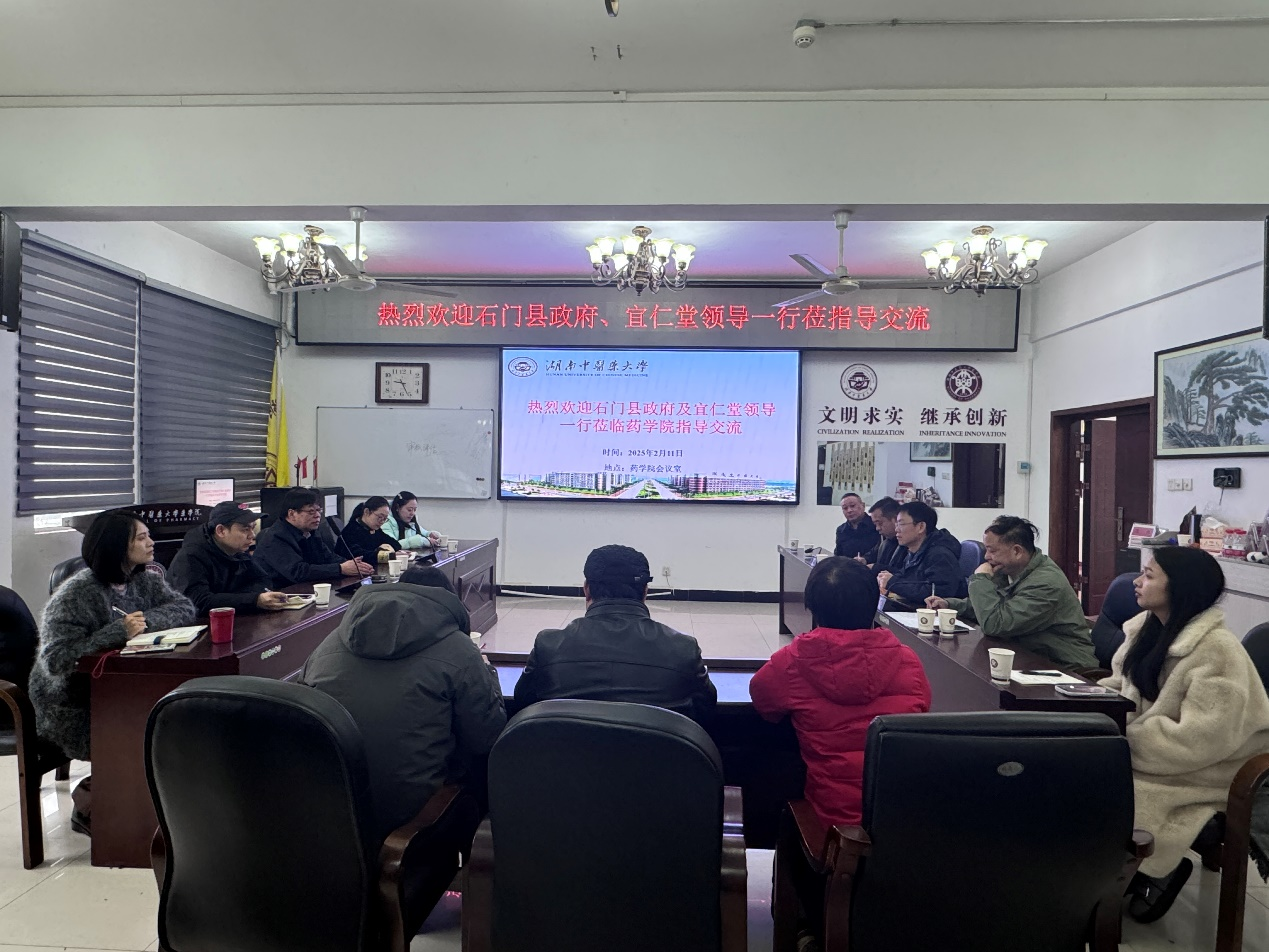 石门县政府领导及湖南宜仁堂中药饮片有限公司一行到药学院进行座谈交流